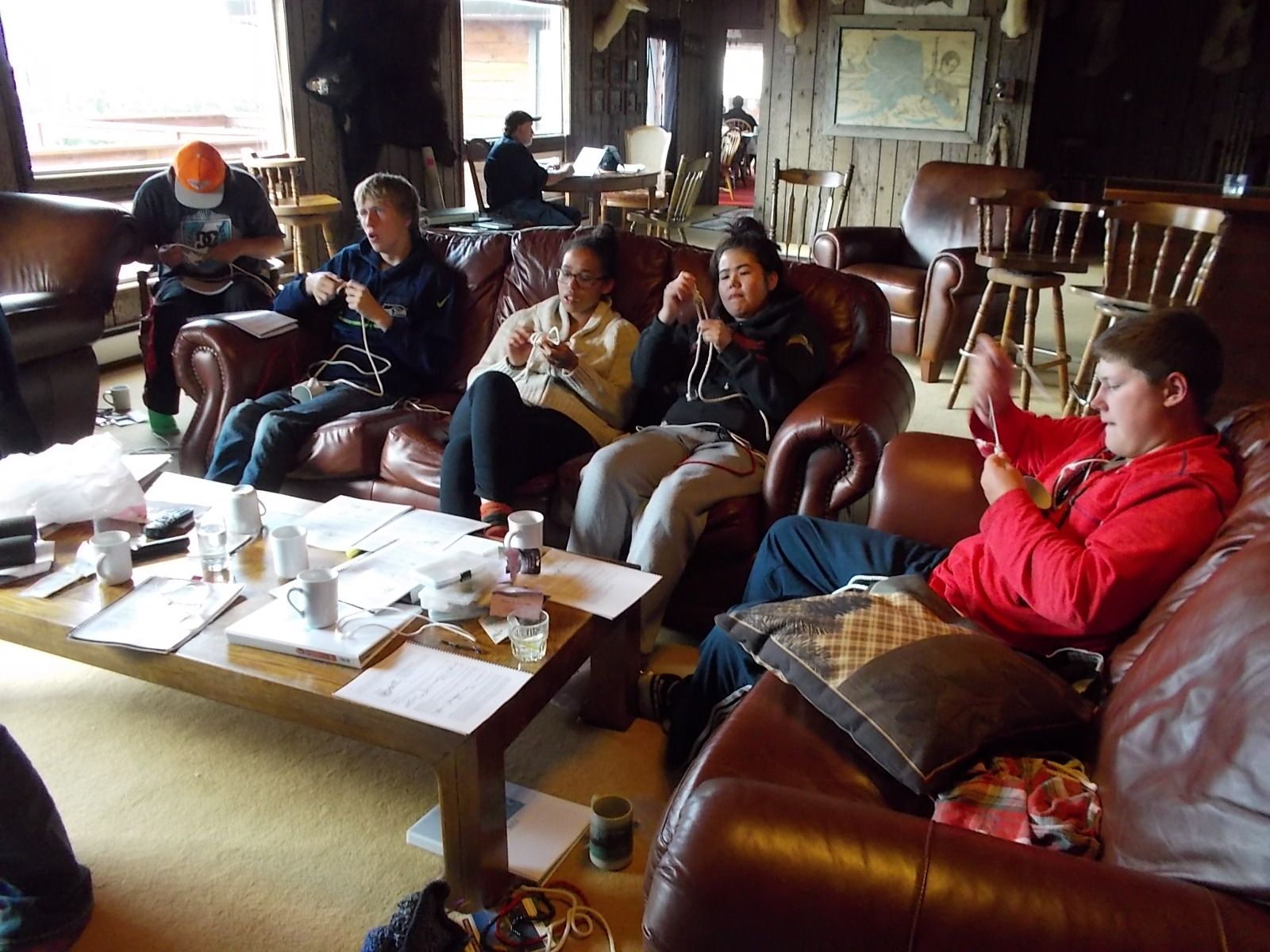Our 2014 class has arrived, having flown in from around the region yesterday afternoon. They’ve completed orientation and covered some fly-fishing basics (gear handling, lingo, basic techniques), and are now hard at work learning to tie flies that they’ll use on the river tomorrow. (Can anyone say ‘perfection loop’?)