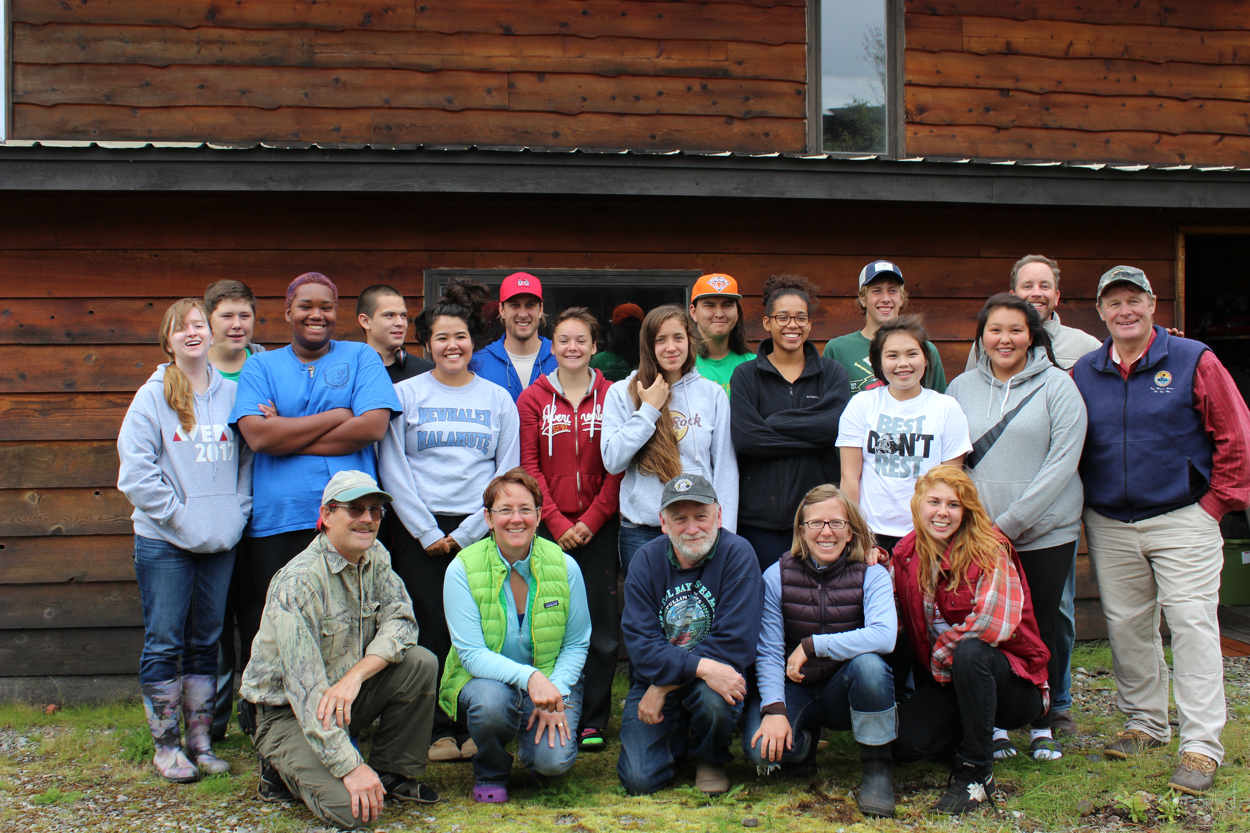 Back Row (left to right): Tara Henry, Alec Halford, Darius Haried, Dennis Straughn, Shiann Nanalook, “Scottie” Scott (Bristol Bay Guide and Guest Academy Instructor), Larina Butkiewicz, Riley Lyon, Tyler Stevens, Shoshone Kendall, Adam King, Rhiannon Nanalook, Brittany Anelon, Anders Gustafson (Bristol Bay Guide and Guest Instructor), Mac Minard (Instructor) Front row: (Instructors) Dan Dunaway, Nanci Morris Lyon, Tim Troll (Founder), and Nellie Williams, Student: Sarah Smith.