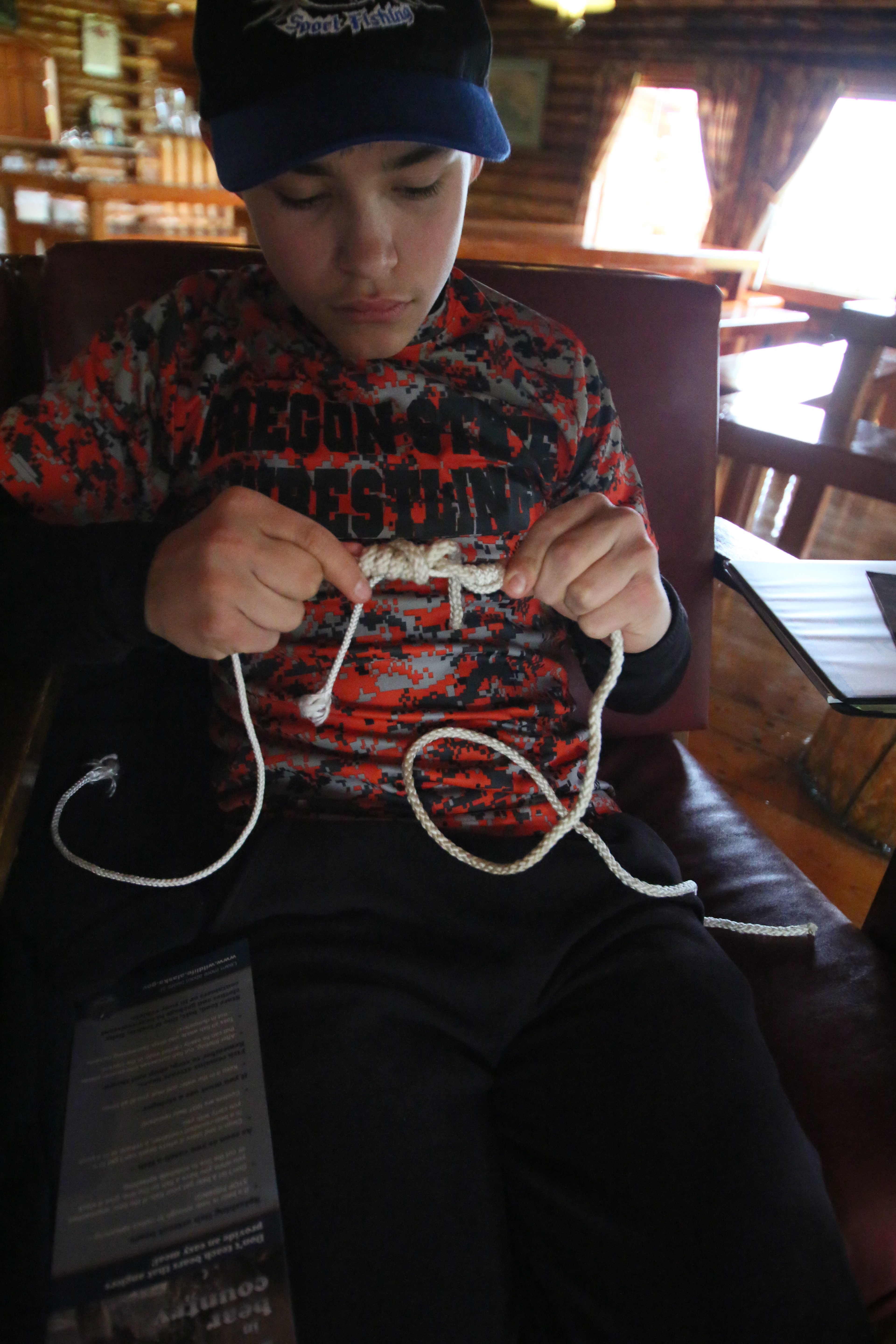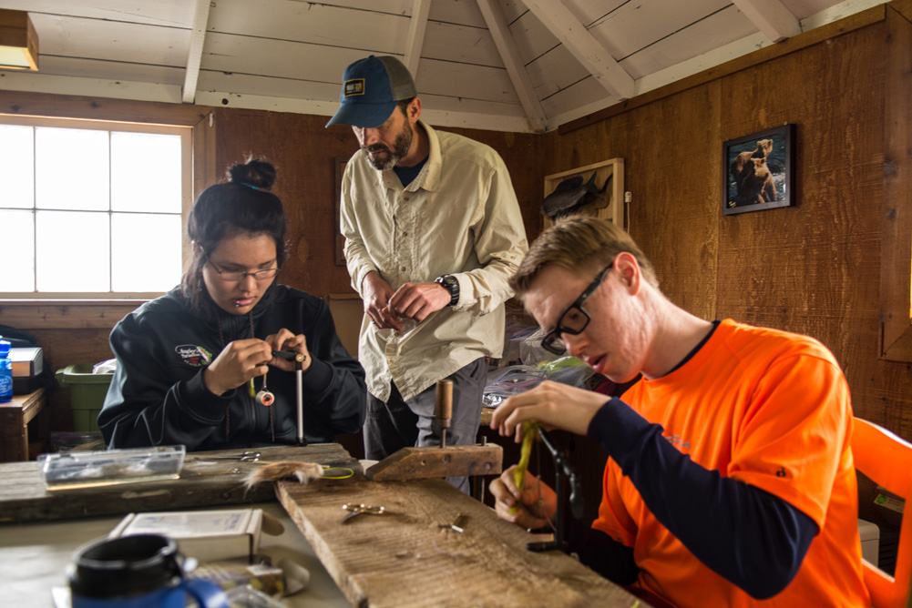 Students broke into two groups to learn essential knots and how to tie the flies they’ll need for the week. While this can be tedious work, the urgency was clear: if their leaders aren’t prepared and flies aren’t tied, they won’t have anything to use for fishing.