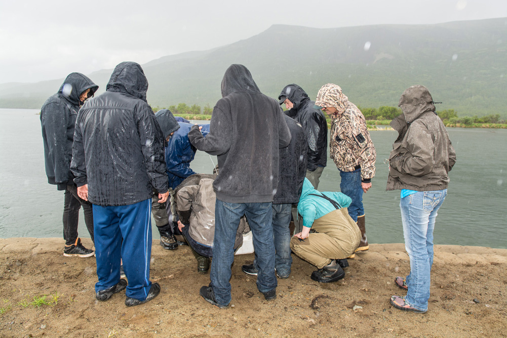 We started the morning with an overview of yesterday and some tips on preparing for a day in the field. Then, Pete the manager here at Kulik, came back to give a bear safety presentation and video. After lunch and a quick discussion on what trout like to eat, the hard work began.